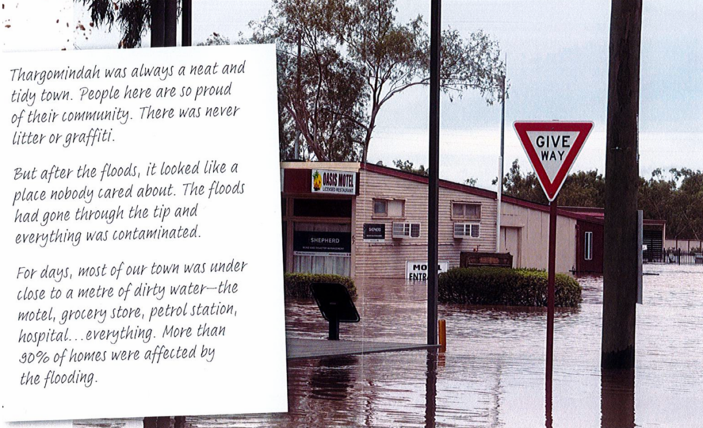 Over many years Dorcas ACTS has been called upon to assist in providing grants to those impacted by natural disasters often in remote regional areas. Here are some photos of stories of those impacted by recent flooding in Thargomindah.